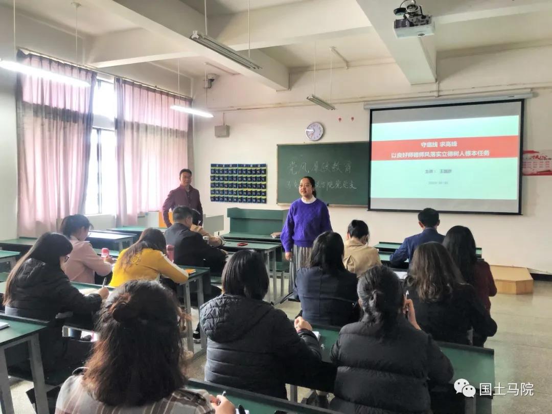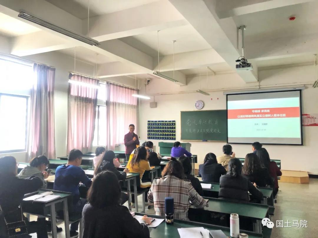 10月31日下午,马克思主义学院在笃行楼514召开党员教育大会,主讲人是澳门网投分管领导党委副书记王国彦,会议由副院长张颖主持。王副书记围绕教育部发布的师德师风“六禁令”、“红七条”对全体教师进行了教育警示,明确了新时代高校教师职业行为“十项准则”,激励教师潜心教书育人,关心爱护学生,遵守学术规范,秉持公平诚信,积极奉献社会。
