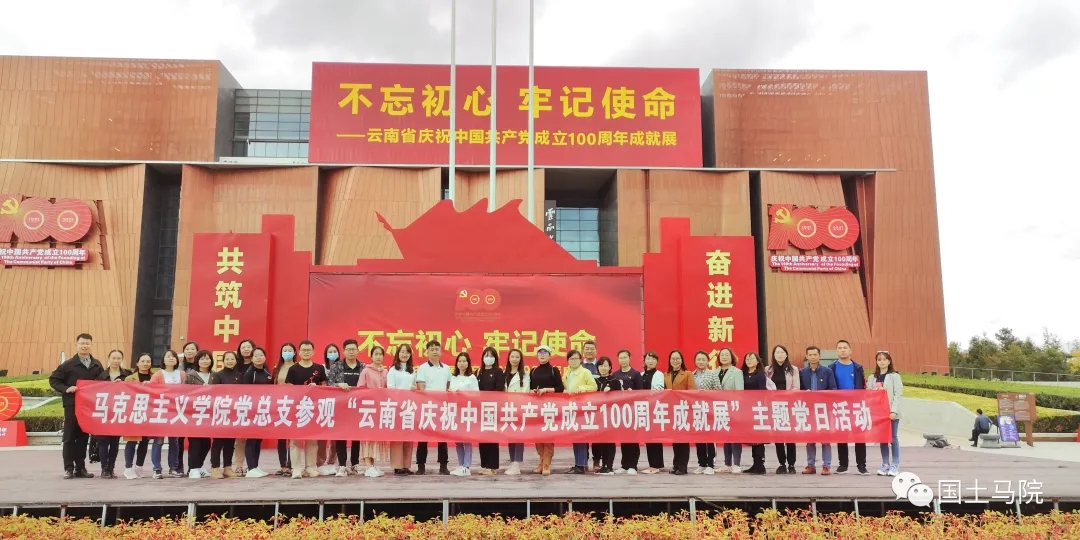 10月20日下午,马克思主义学院党总支组织全体党员教师到云南省博物馆参观“不忘初心、牢记使命——云南省庆祝中国共产党成立100周年成就展”,本次活动是马克思主义学院各支部主题党日活动的重要内容。