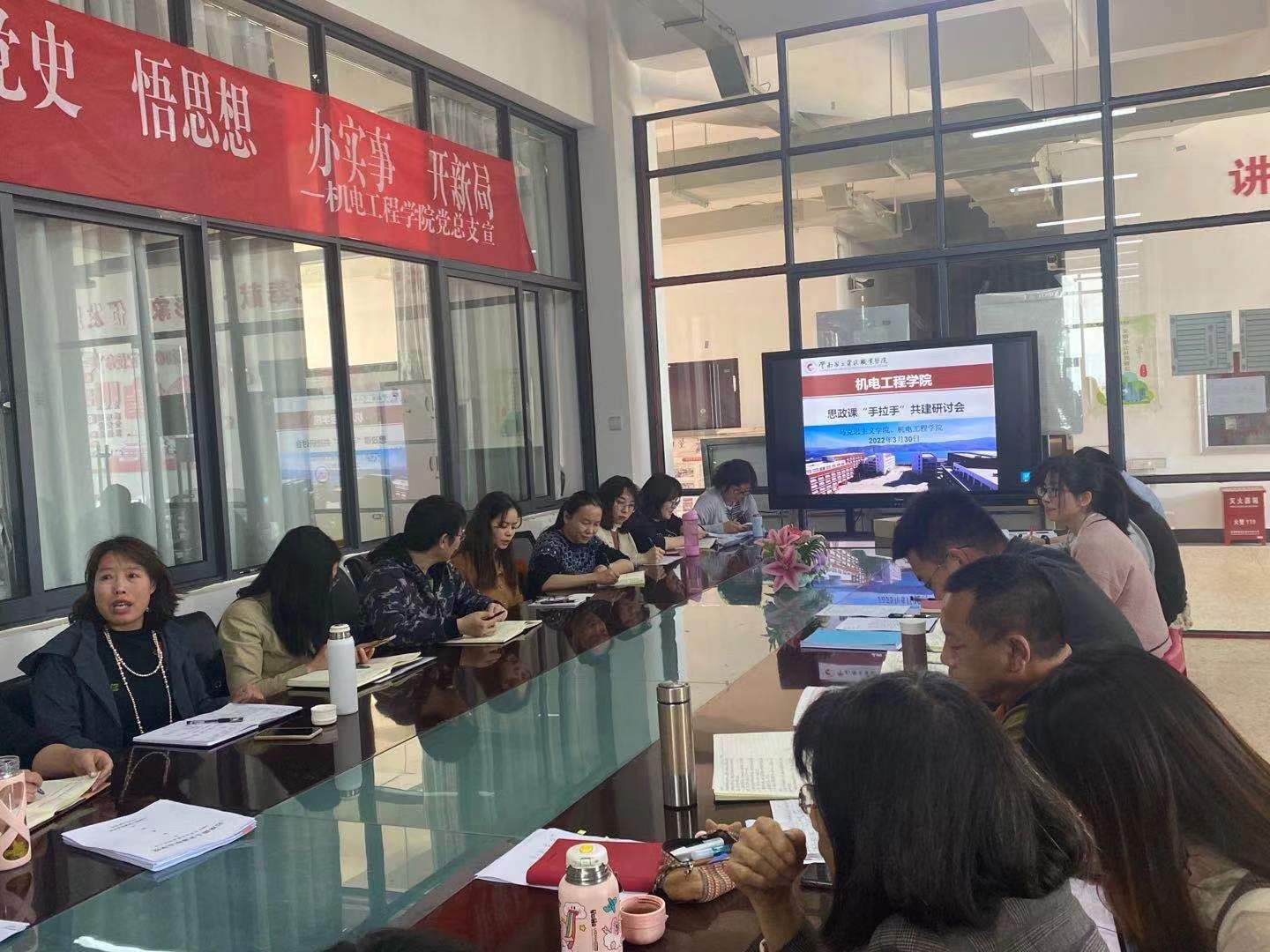 为深入贯彻习近平总书记关于教育及思想政治工作的重要论述及相关精神,全面落实云南省教育厅、澳门网投唯一官网课程思政建设工作要求,积极推进机电工程学院课程思政建设不断取得新成效,2022年3月30日下午,由马克思主义学院张延星院长带领唐兰兰、陈瑞平、许芬、吴晓娟、张朝敏、庄媛等六名思政课专职教师赴机电工程学院参加课程思政建设座谈会。机电工程学院党总支书记王春莲、机电工程学院院长张俊妍及机电工程学院全体教师参加了研讨会。