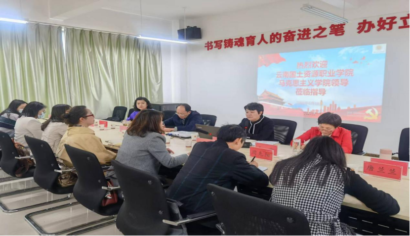 首先,昆明冶金高等专科学校马克思主义学院院长孙锐介绍了昆明冶金高等专科学校的基本情况以及该校马克思主义学院的建设情况,分享了该校马克思主义学院省级精品课程建设的宝贵经验,从教学方法改革、教学手段改革以及考核体系改革、教学质量监控等八个方向阐述了精品课程建设的方向,并且需要通过培训研修、“传帮带”制度实施、数据库建设、慕课建设和社会实践等方面来进行强化;马克思主义学院党总支书记季永清介绍了该校马克思主义学院党建工作的相关经验,并深入介绍了该校马克思主义学院的智慧党建,提出了样板党支部的建设方向。该校马克思主义学院副书记陈勉、副院长王雪、李娟、概论课主任毛娅萍也先后分享了马克思主义学院的建设经验和“概论”精品课程的建设情况。紧接着,双方与会教师围绕师资队伍建设、教学方法的改革创新、思政课程设置与建设、教学能力大赛的备赛经验、实践教学的开展和基地建设以及马院的建设等工作进行了深入的交流与分享。