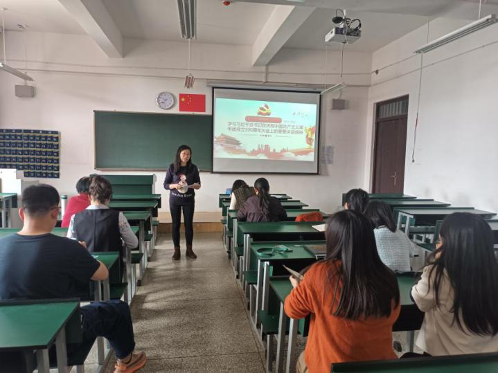 会上,全体党员围绕“如何将习近平总书记在中国共青团成立100周年大会上的讲话精神融入‘概论课’教学工作中”作了交流发言。其中,段会珍同志从“做一个忠诚的爱国者”“坚定不移跟党走”“增强本领,追求进步”等方面谈了如何将习近平总书记对青年工作的指导融入到思政课的教学工作中,并强调:作为思政课教师,要牢记习近平总书记对思政课教师提出的“六要”,加强学习、坚定信念,为努力培养担当民族复兴大任的时代新人、培养德智体美劳全面发展的社会主义建设者和接班人奋力谱写新篇章。廖若兰同志谈到:作为一名高校思政教师,要深入学习领会习近平总书记重要讲话精神,为党育人、为国育才,心系广大青年,用心关心关爱青年。激励青年学生紧跟党走,把自己的小我融入祖国的大我,与祖国需要、人民利益同频共振,在实现中华民族伟大复兴中国梦的新征程上奋勇前进并实现个人价值。蒋云朋同志谈到:要深入学习习近平总书记的重要讲话精神,读原文、悟原理,及时跟进学、深入思考学,用自己的实际行动感染学生、影响学生、教育学生,做学生思想的“引路人”。刘旭华同志从“把担当时代责任作为青春奋斗的永恒主题”“把矢志创新创业作为青春奋斗的鲜明标识”“把锤炼过硬本领作为青春奋斗的重要基石”三个方面谈了作为一名思政课教师,如何在教学育人中把讲话精神融入进去,更好地发挥思政课立德树人的作用,启发广大青年学生团员跟党走、听党话的自觉性。