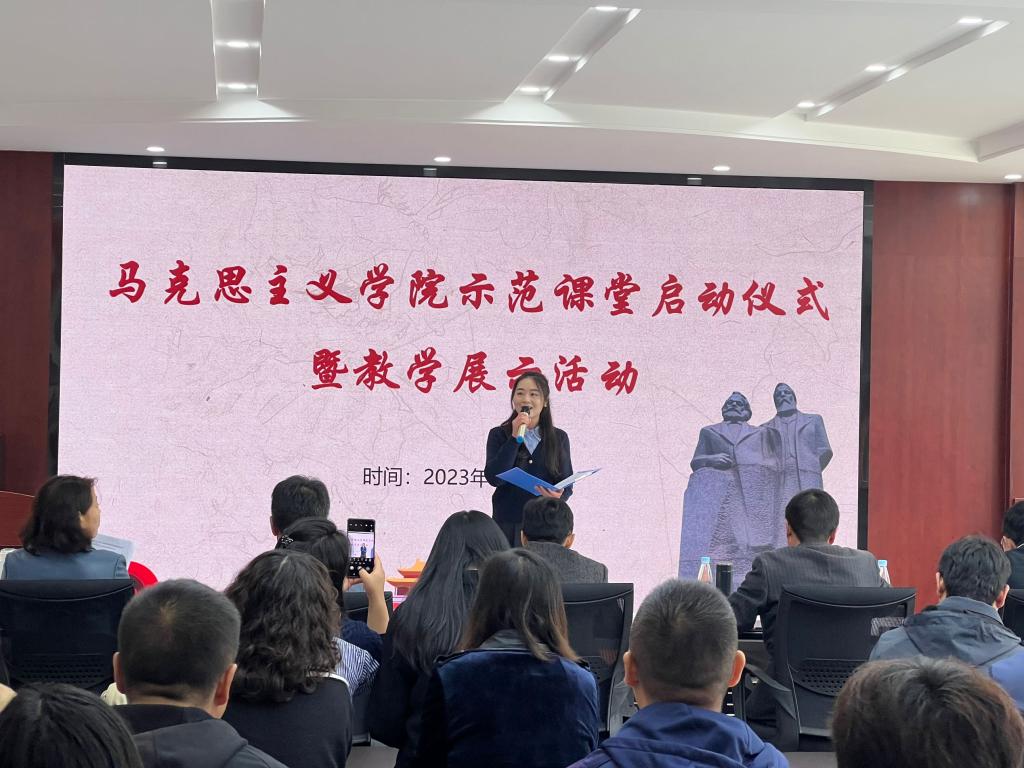 10月13日下午,马克思主义学院示范课堂启动仪式暨教学展示活动在勘物楼尚能馆举行。学校党委书记牛定柱、党委副书记李昆峰、教务处处长郑毅、发展规划处处长吴云恩莅临指导,马克思主义学院院长张延星、党总支书记唐立颖、副院长周先阳出席本次活动,马克思主义学院全体教师参加。