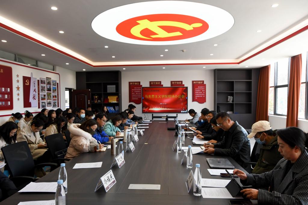 张延星围绕省级项目、课程建设、团队建设、数字思政、大思政课五个方面对2024年马克思主义学院建设重点工作作汇报。校党委班子成员分别就马克思主义理论研究宣传、马克思主义学院建设的中长期规划、学科建设、人才培养、人才队伍建设、思政课程与课程思政改革创新、平台资源建设等方面提出马院下一步的工作思路和要求。