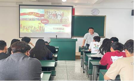 学校党委委员、纪委书记、监察专员柳勇以“铸牢中华民族共同体意识”为题,首先讲述了中华民族的起源,其次分析了铸牢中华民族共同体意识的重要战略意义、丰富内涵以及实践路径。最后他叮嘱学生要牢记自己是中华民族的一员,要维护好我国各民族团结稳定和谐的局面。