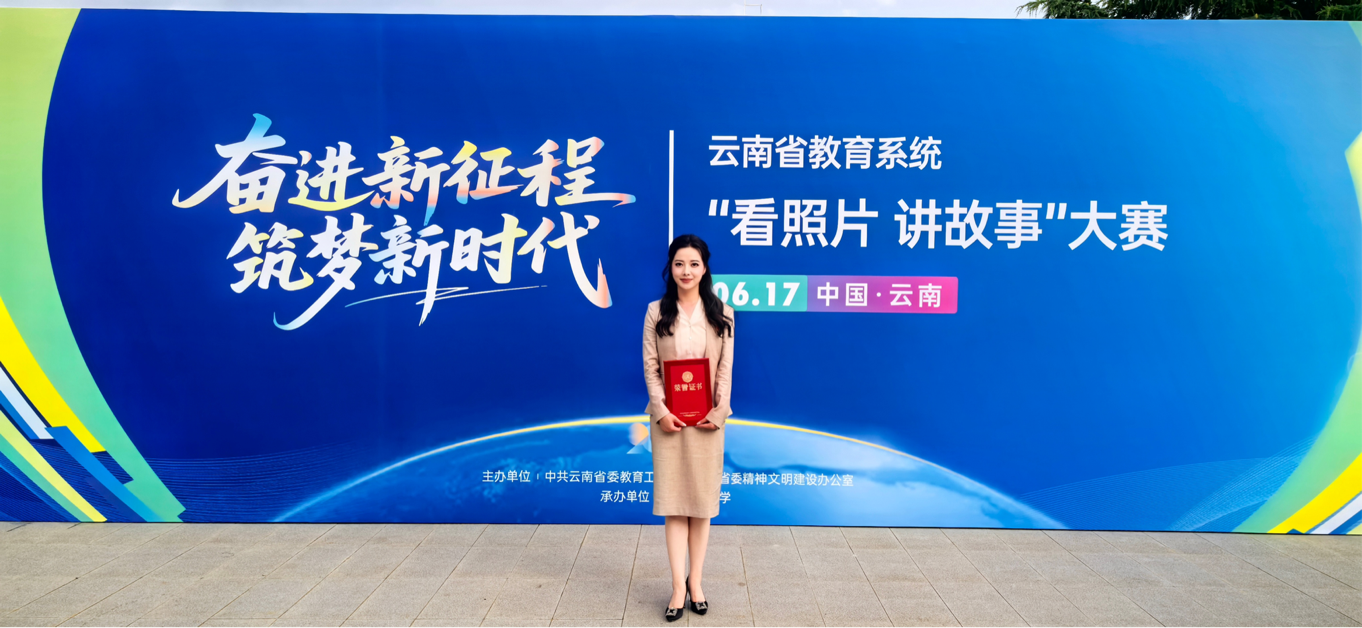 在刚刚结束的2025年云南省教育系统“奋进新征程 筑梦新时代——看照片讲故事”大赛中,澳门网投青年教师慈曾妮演讲作品《你护山河无恙 我等你平安回家》荣获教师组一等奖。