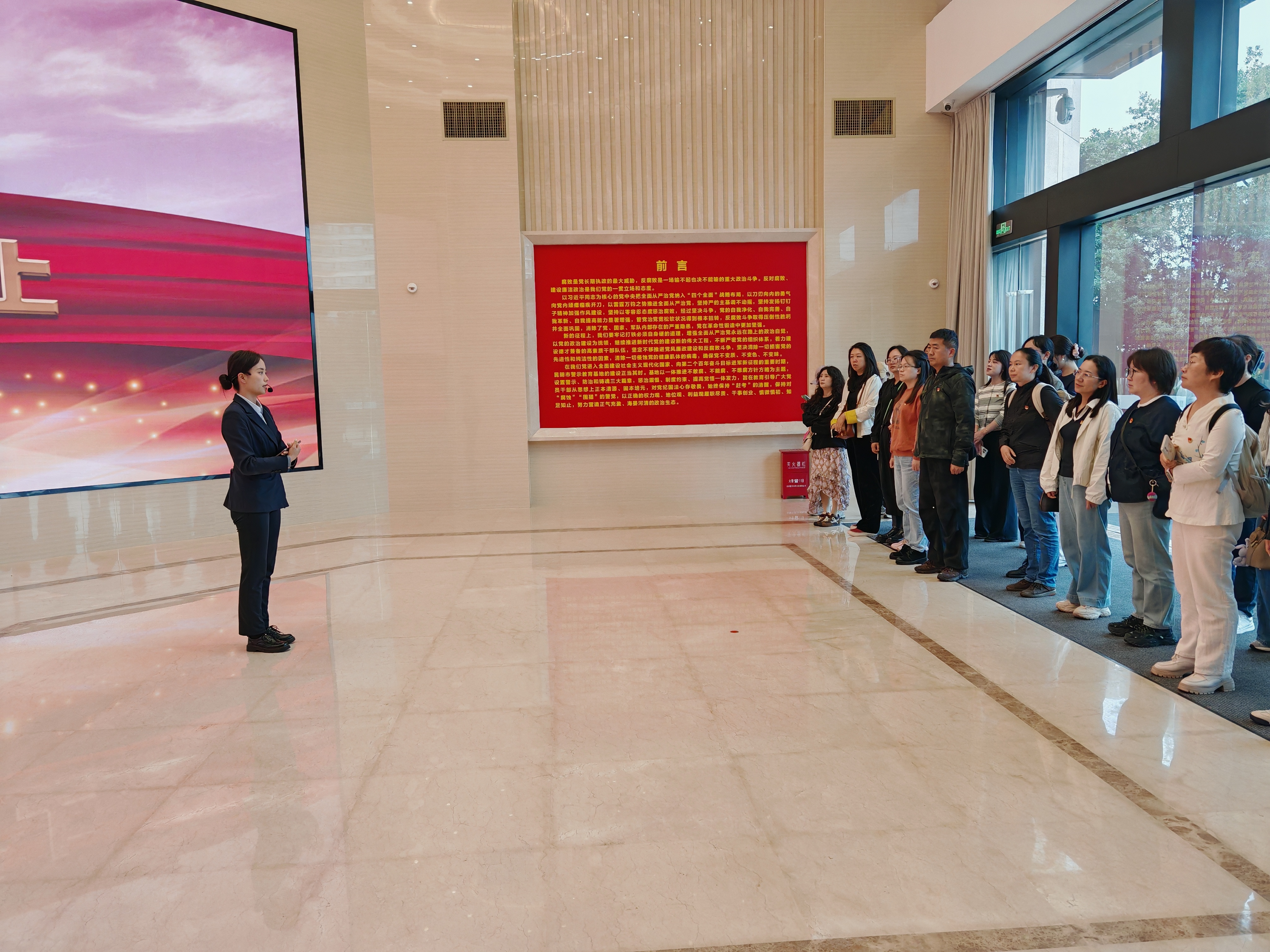 在讲解员的引导和讲解下,大家依次参观了“警示”“防治”“铸魂”三个主题展区,共同观看了警示教育录纪录片。一个个鲜活的案例、一幅幅警示图,宛如一面面镜子,映照出违纪违法者从迷失初心到坠入深渊的全过程,生动地展现了他们在失去自由后对曾经行为的深深悔恨,让在场的每一位党员深受触动。