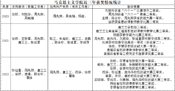 自马克思主义学院党总支成立以来短时间里,在一流党建的引领下,马克思主义学院课程建设取得显著成效。三年以来,学院各门课程的教学效果优良获学生好评教师获省级教学竞赛一等奖2项、二等奖6项、三等奖4项;编写教材4部,出版党史学习教育理论专著1部;申报省级课题并立项2项、厅级课题5获评校级教学成果奖二等奖1项;获评省级在线精品课程1